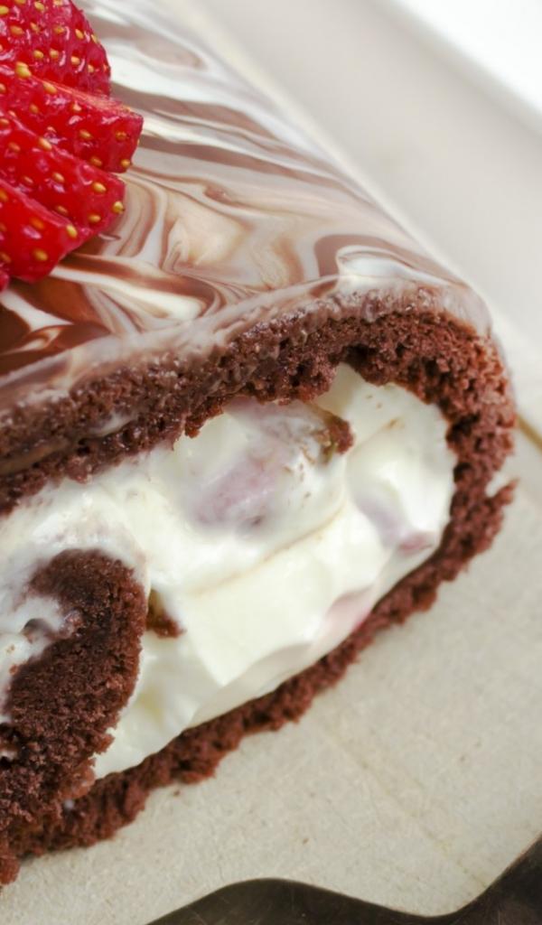Обои Шоколадный рулет с клубникой