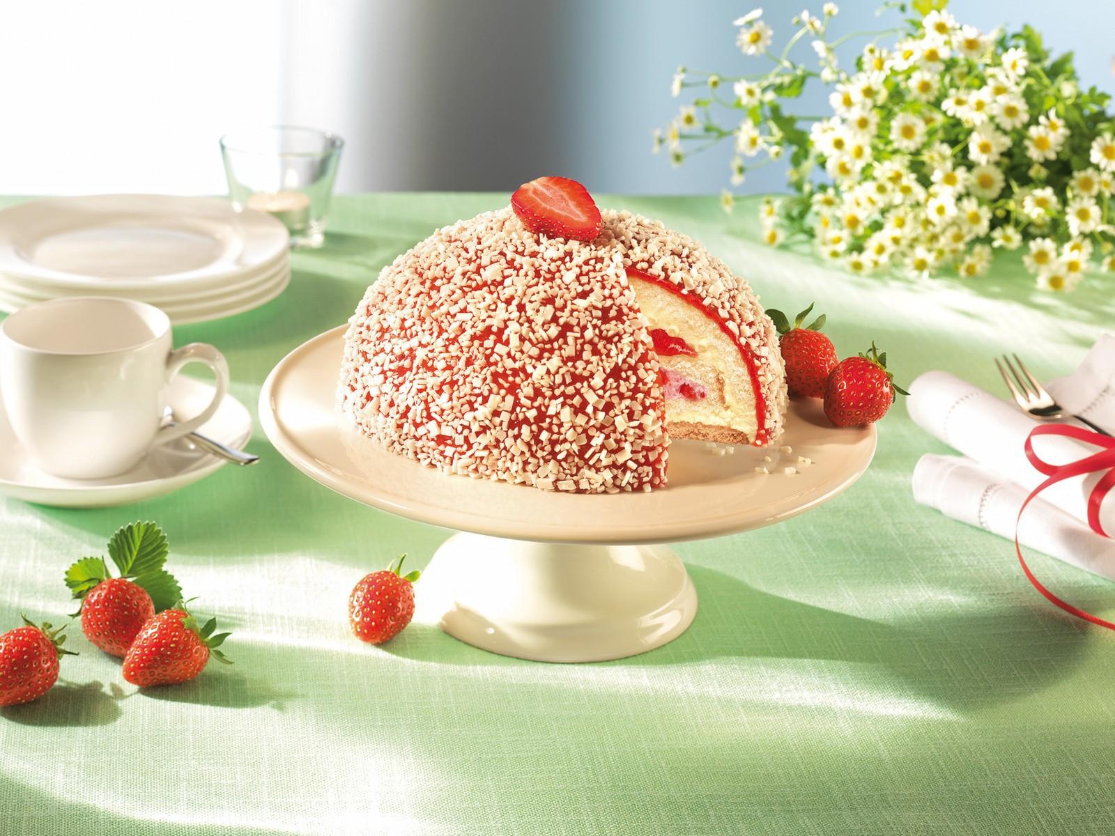 Обои Клубничный десерт на белой посуде
