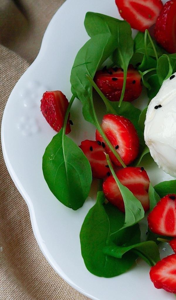 Обои Мороженое с клубникой и листьями