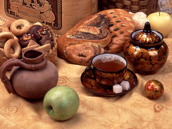 Обои Вареные яйца на столе с кувшином, выпечкой и масленкой