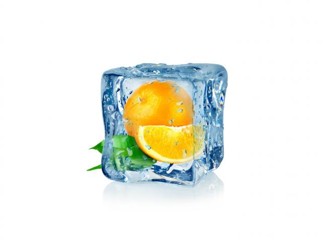 Обои Апельсин в кубике льда