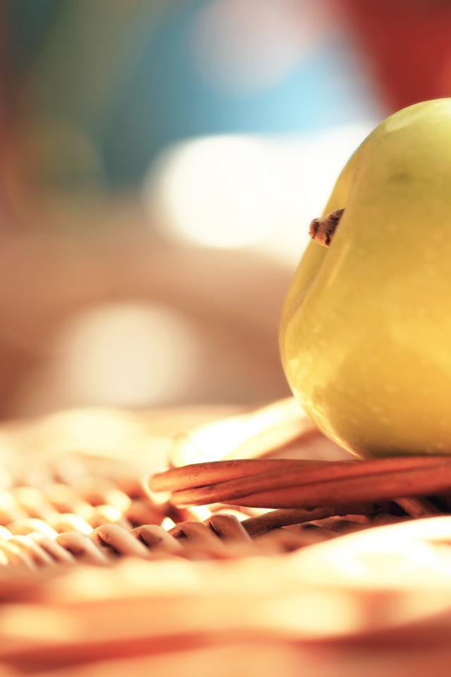Обои Белое яблоко на плетеной подставке