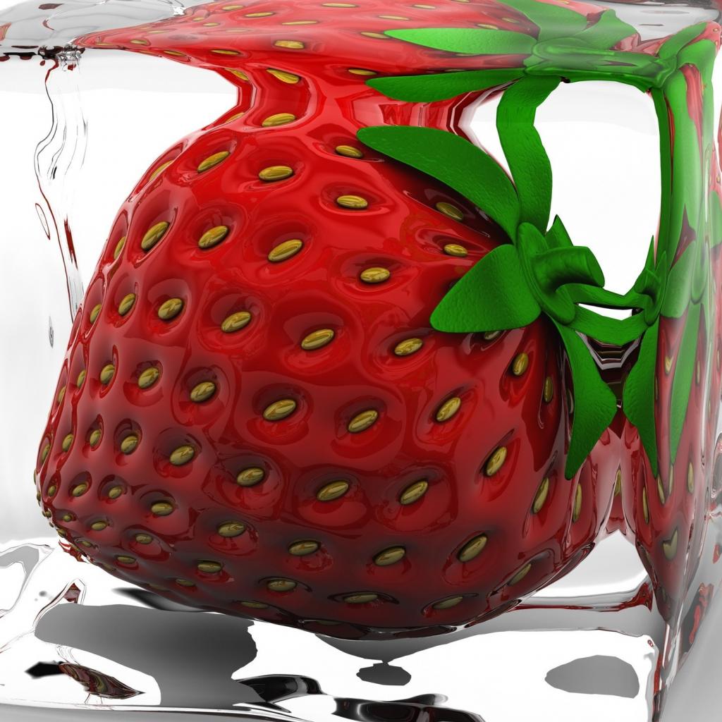 Обои Клубника в кубике льда