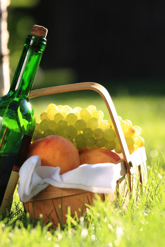 Обои Бутылка вина и фрукты на природе