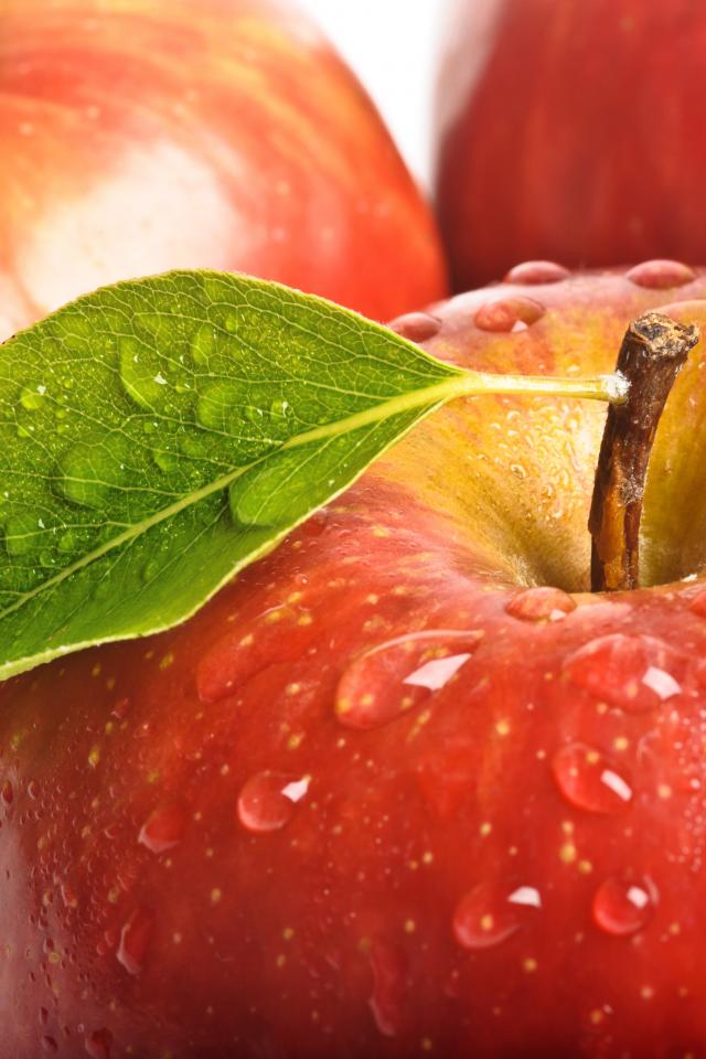Обои Яблоко с каплями воды