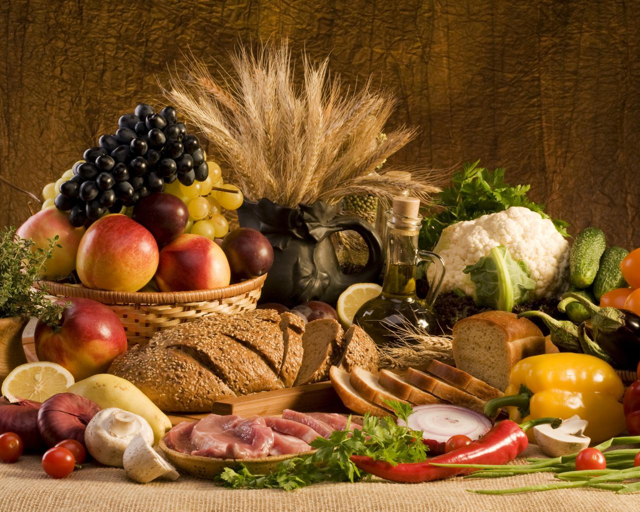 » Обои Хлеб, Фрукты, Грибы, мясо