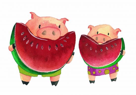 Обои Поросята с арбузами