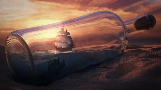 Обои Морское чудовище и корабль в бутылке