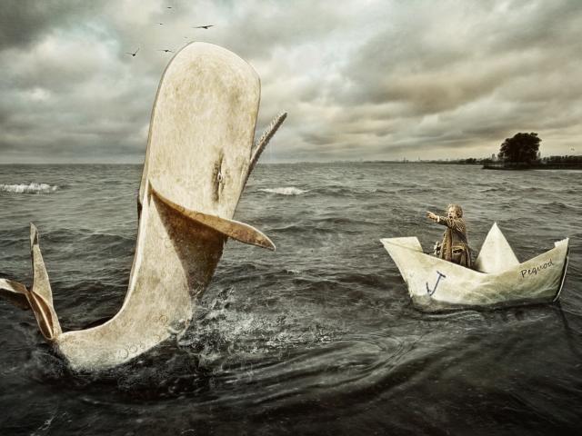 Обои Мужчина в бумажном кораблике и касатка