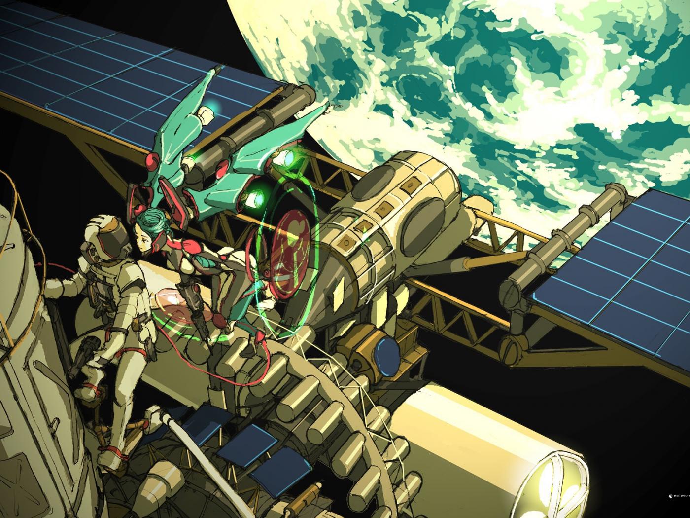 Обои Роботы ремонтируют космическую станцию