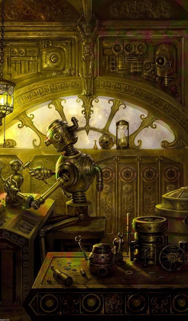 Обои Роботы делают роботов, стимпанк