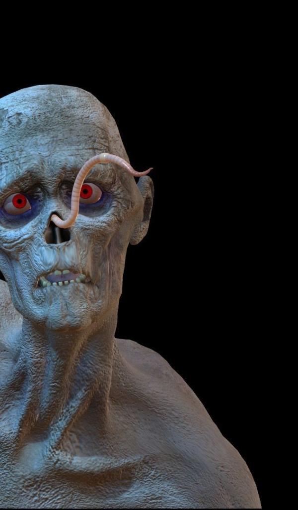 Обои Червяк на лице зомби