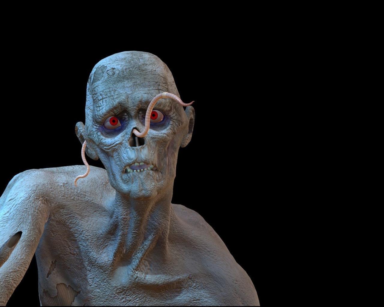Обои Червяк на лице зомби