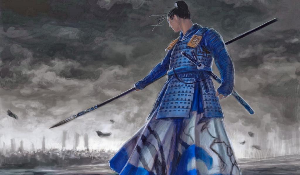 Обои Самурай в синей одежде