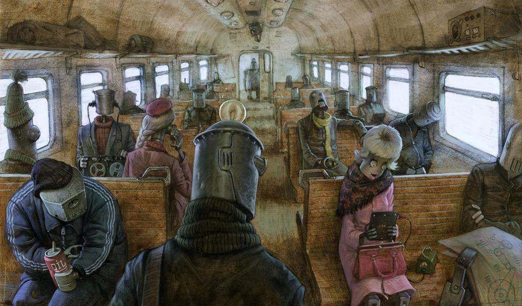 Обои Роботы в пригородном поезде
