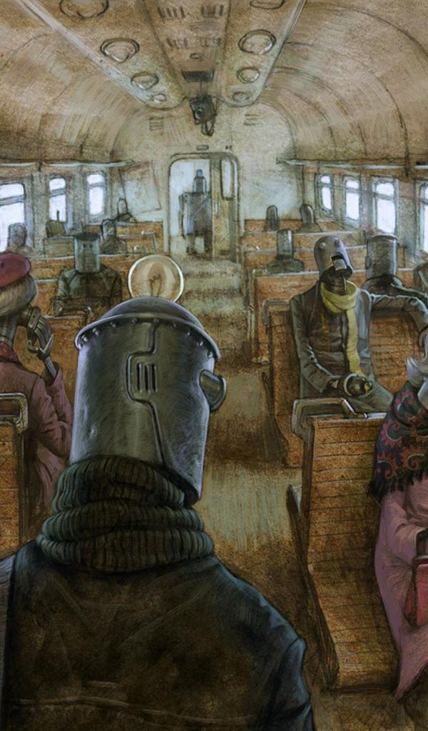 Обои Железные роботы в поезде