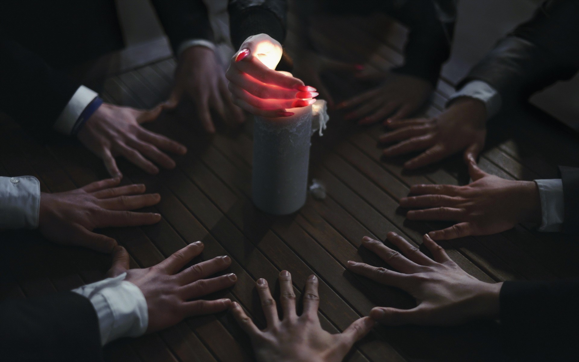 Обои Люди вызывают духа при помощи свечи