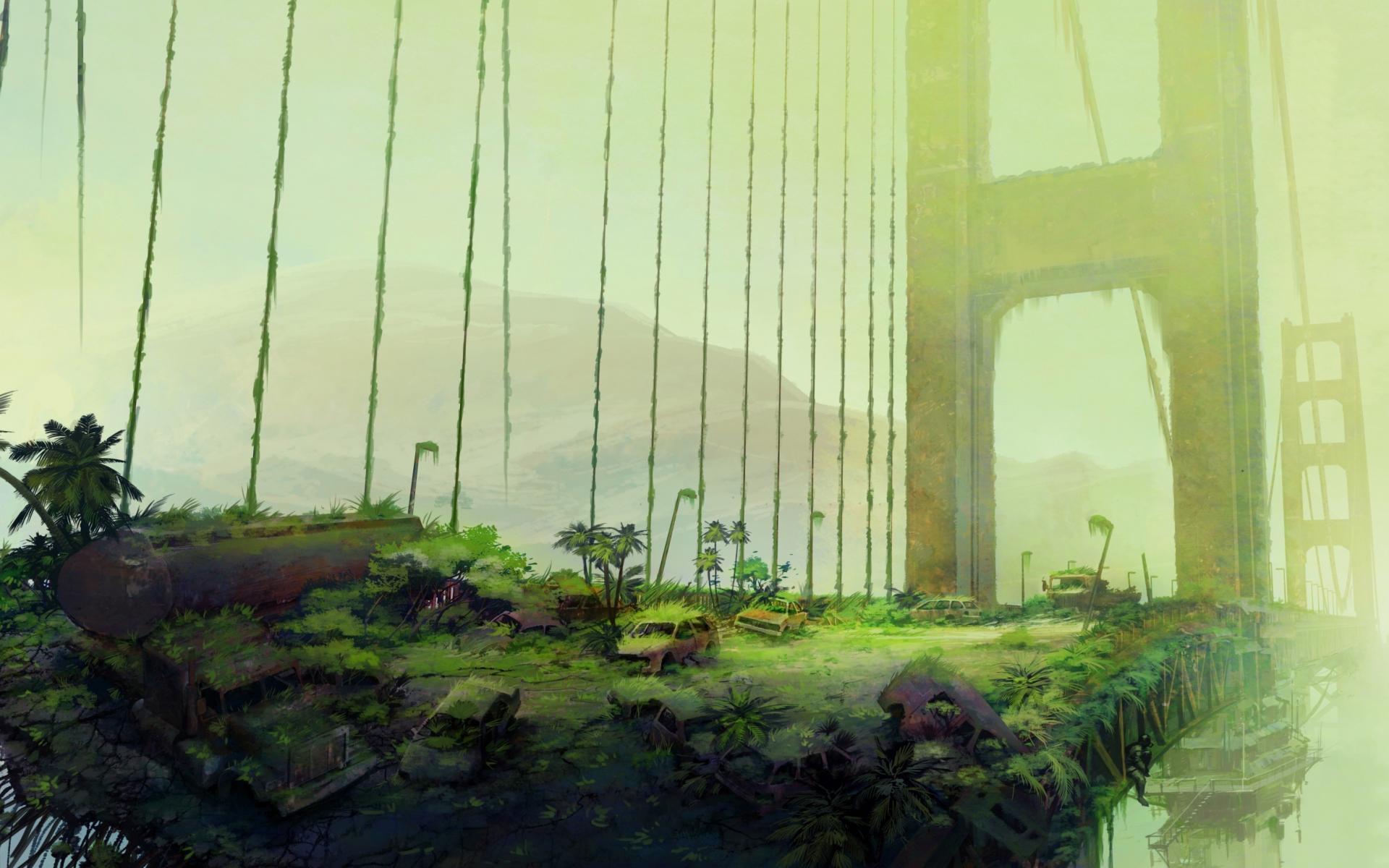Обои Поросший травой Бруклинский мост