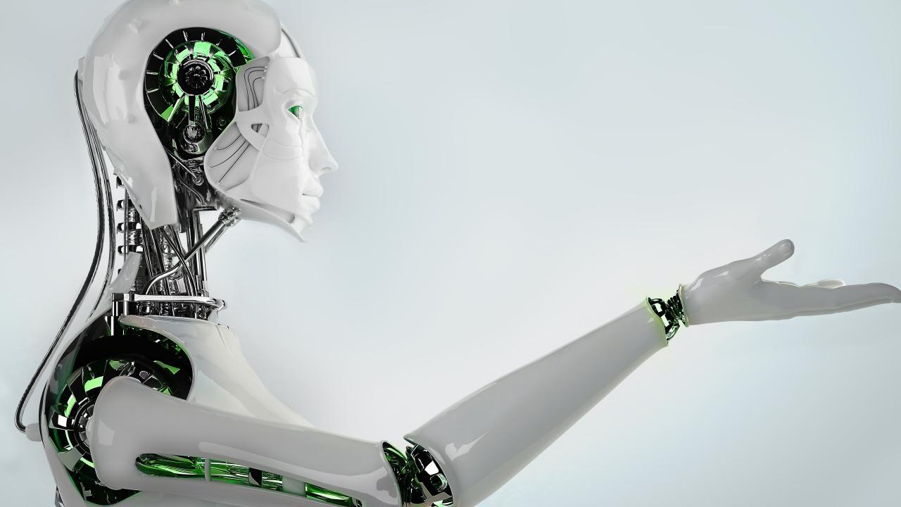 Обои Белый робот с зелеными вставками