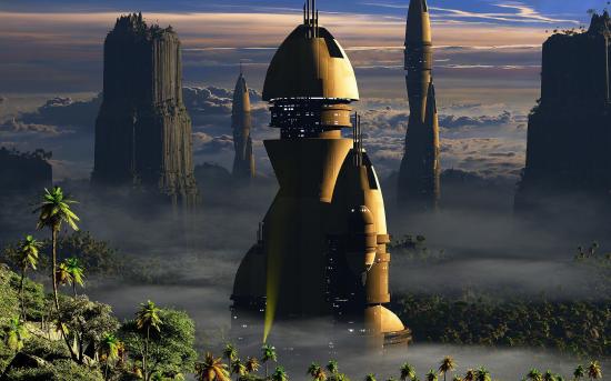 Обои Фэнтези город в стране пальм
