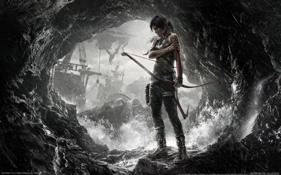 Обои Лучница среди брызг в пещере