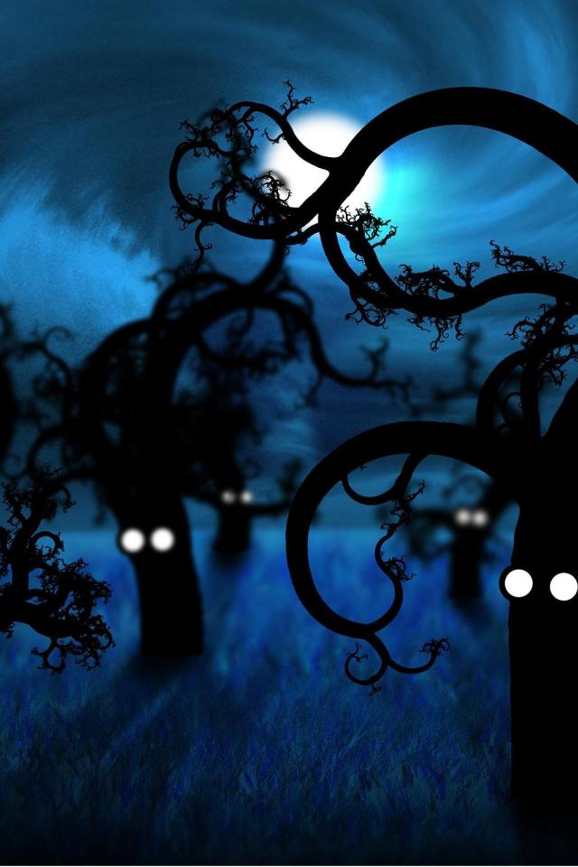 Обои Живые деревья в полнолуние