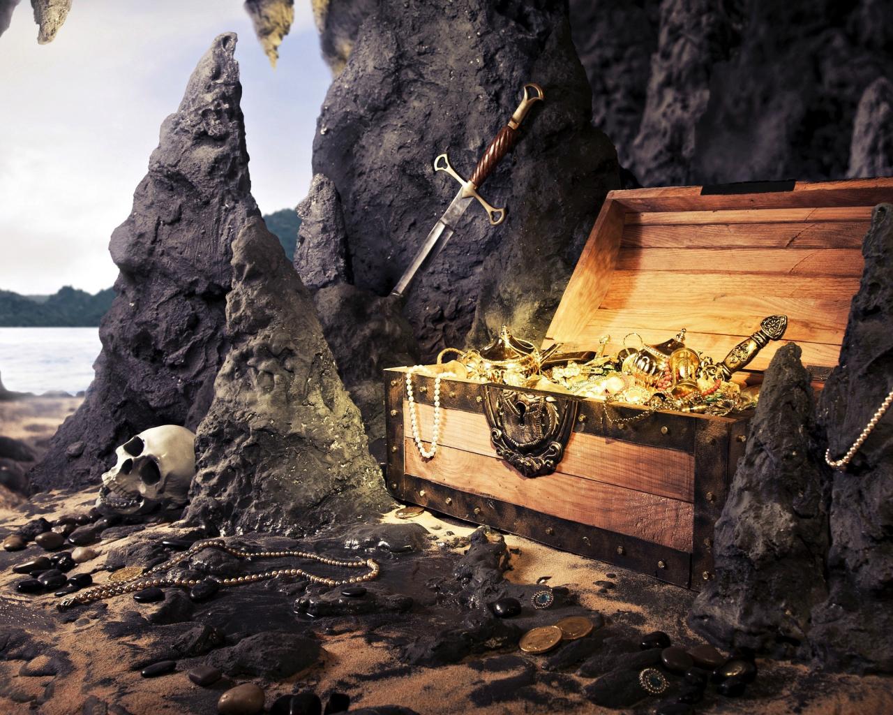 Обои Сокровище пиратов в пещере