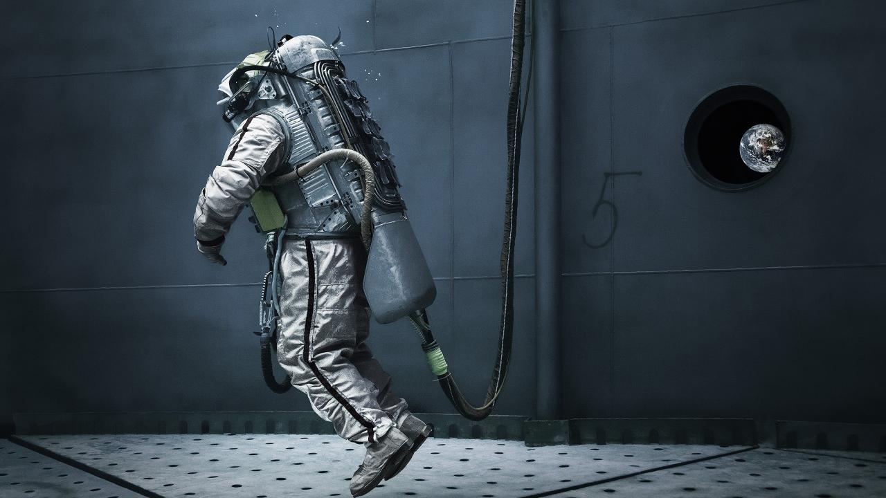 Обои Космонавт в ангаре космической станции