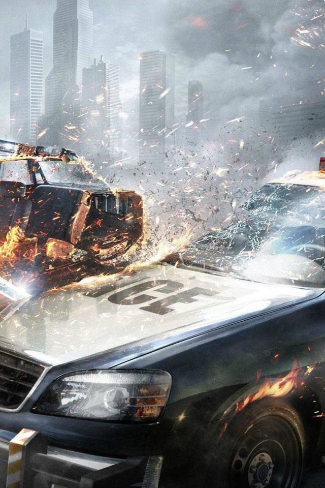 Обои Злодей разрушил машину полицейских