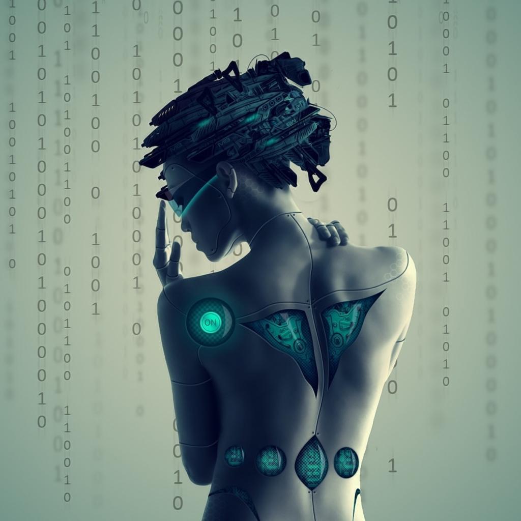 Обои Девушка андроид на цифровом фоне