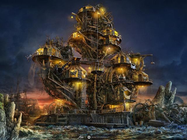 Обои Фантастический дом из обломков кораблей