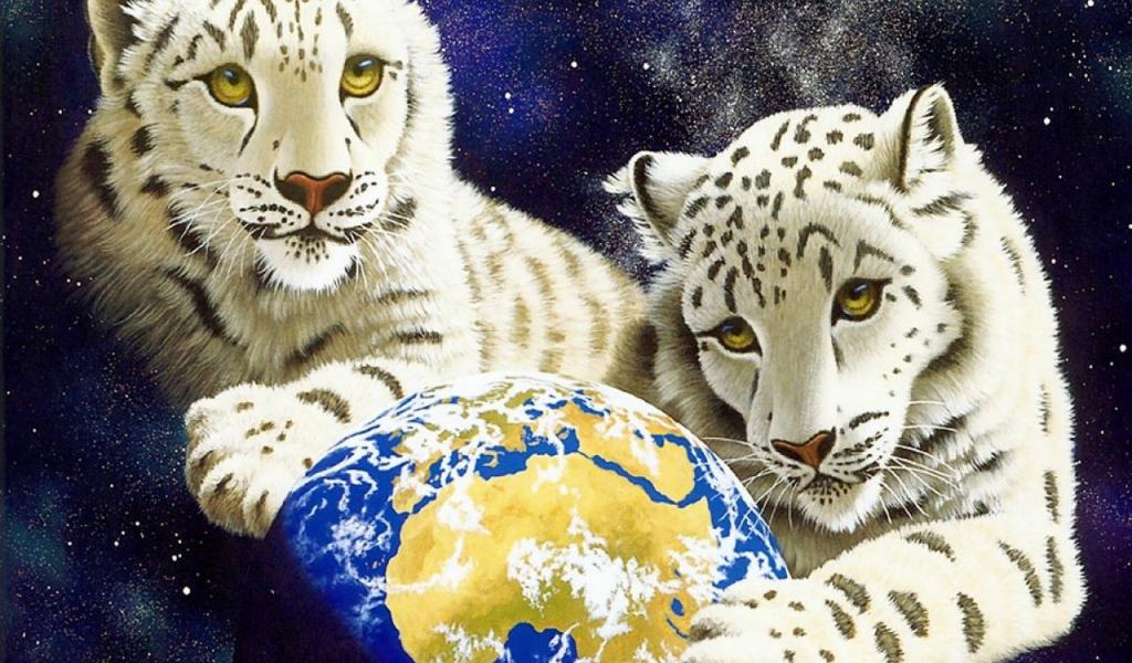 Обои Белые тигрята берегут Землю