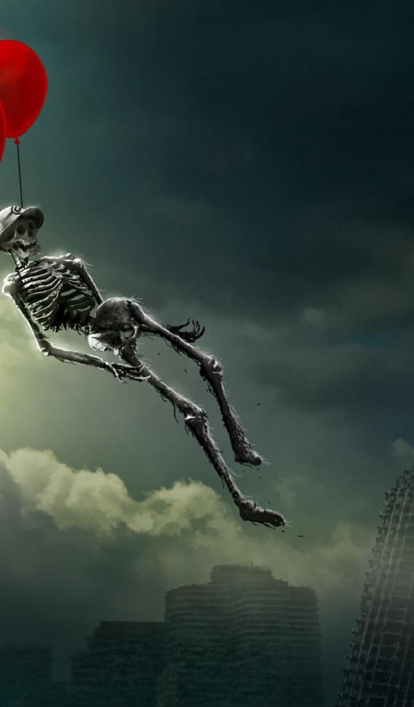 Обои Скелет улетает на воздушных шариках