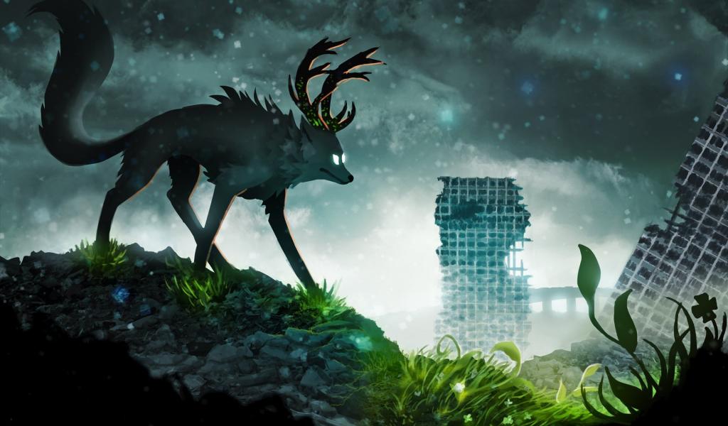 Обои Рогатый волк в мире будущего