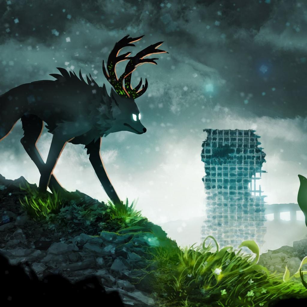 Обои Рогатый волк в мире будущего