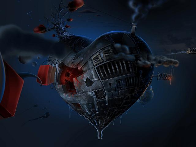 Обои Железное сердце парит в невесомости