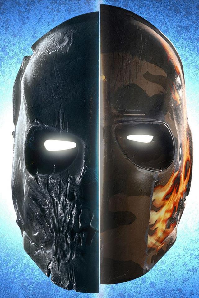 Обои Деревянная и железная маска, голубой фон