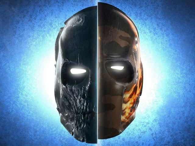 Обои Деревянная и железная маска, голубой фон