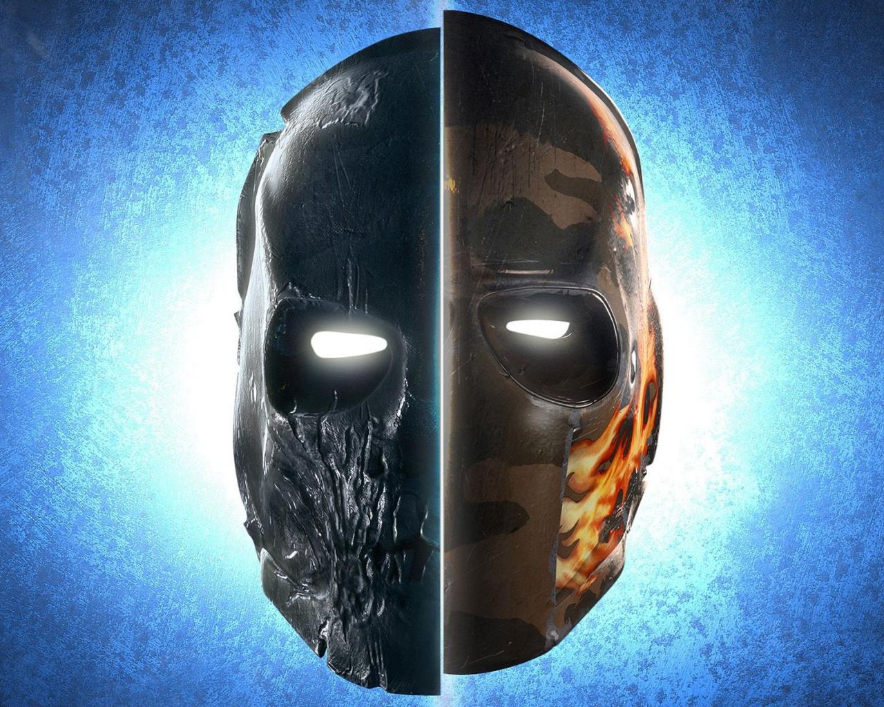 Обои Деревянная и железная маска, голубой фон