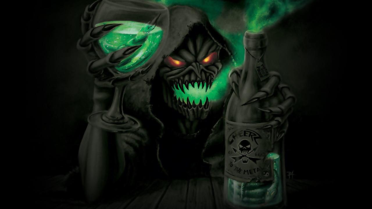 Обои Смерть пьет алкоголь из преисподней