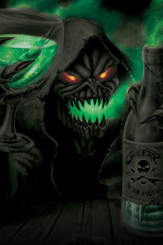 Обои Смерть пьет алкоголь из преисподней