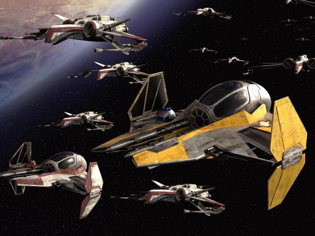 Обои Отряд кораблей у планеты в Звездных войнах