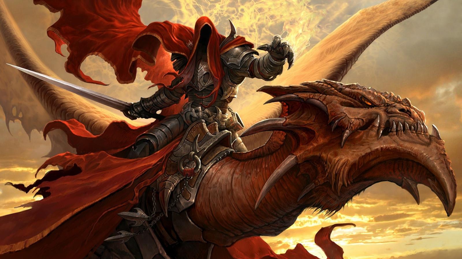 Обои Дух в латах верхом на драконе