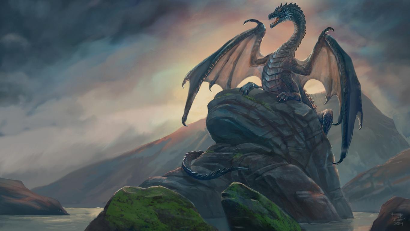 Обои Дракон на камне