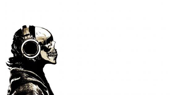 Обои Лысый череп в наушниках