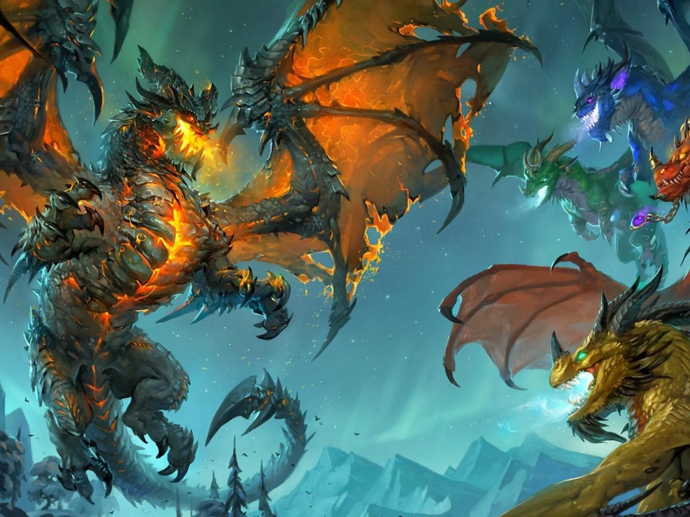 Обои Сражение огнедышащих драконов
