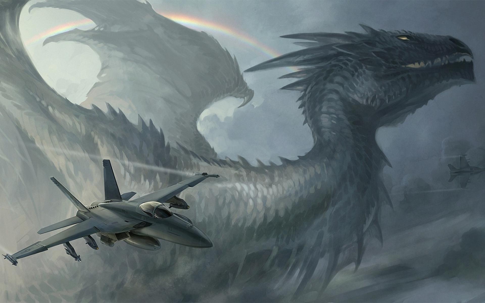 Обои Самолет на фоне дракона
