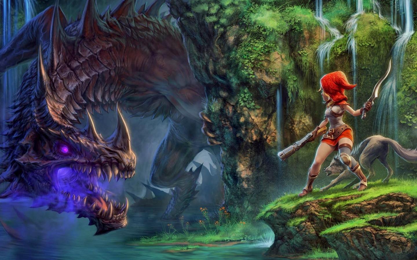Обои Красная шапочка встретила в лесу дракона