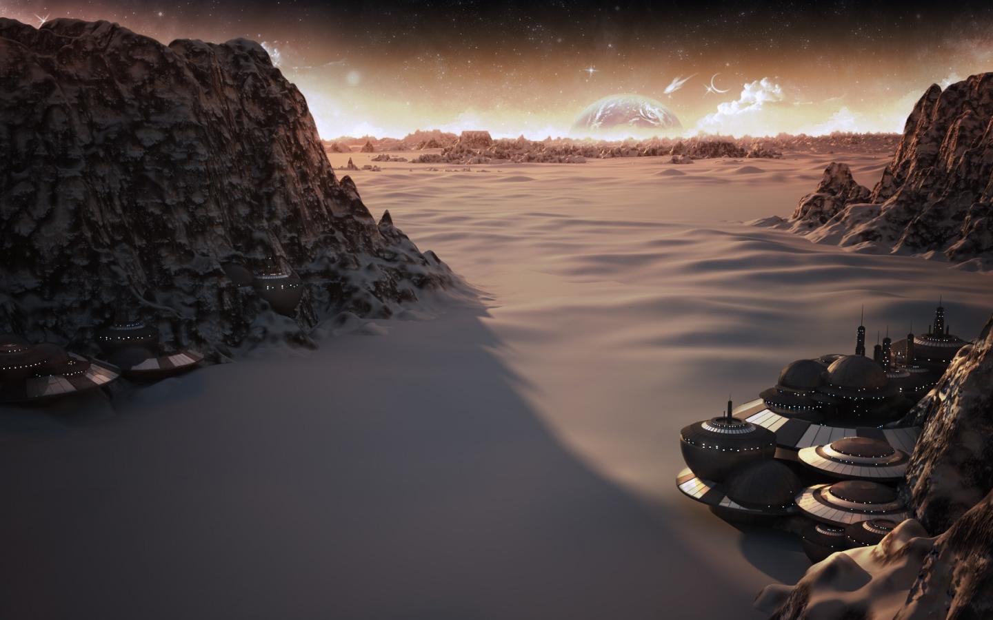 Обои Круглые дома в колонии на другой планете