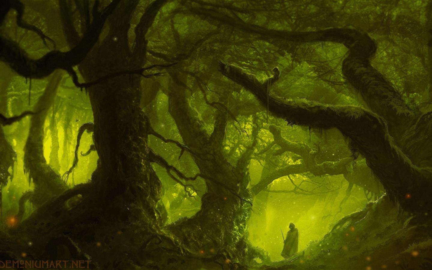 Обои Магический лес в зеленой мгле